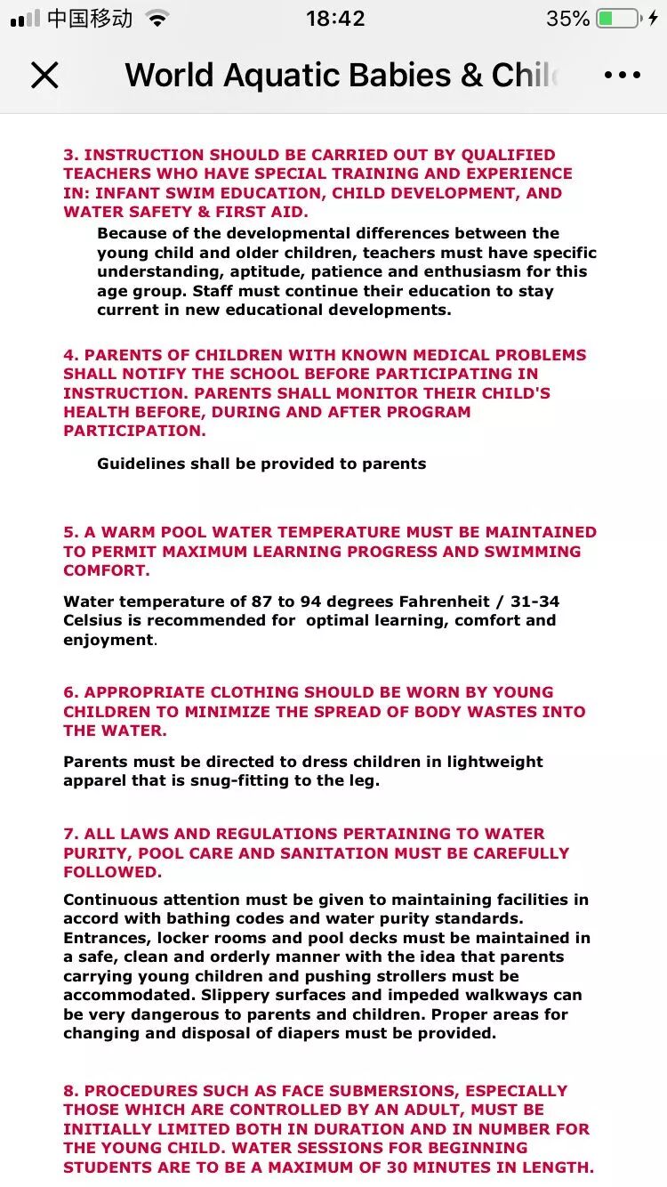 我们参考了国际亲子游泳的水温标准,并且结合了中国宝宝的身体发育特征,把吐泡泡的泳池水温设定为32-34℃,并严格按照这个标准执行。